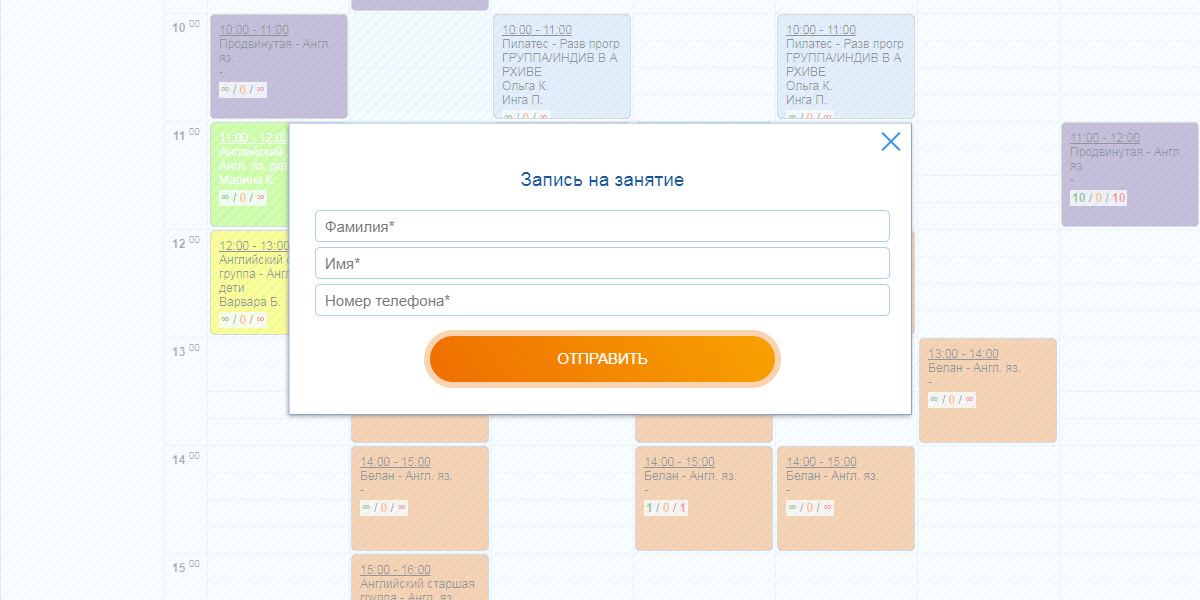 - можливість онлайн-запису для лідів прямо з розкладу басейну на вашому сайті — адміністратор отримає повідомлення і зможе підтвердити запис.