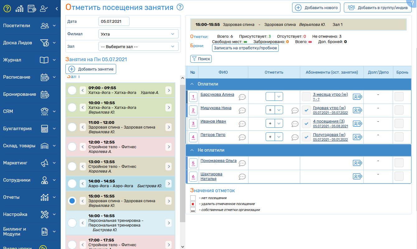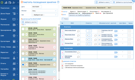 - зручно і швидко відзначати відвідувачів через електронний журнал — з розподілом по доріжках, групах і часових слотах;