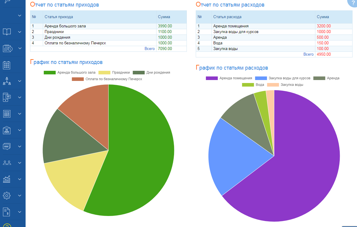 Фінансовий облік у повній мірі! Classberry CRM підтримує більше 15 видів фінансових операцій.